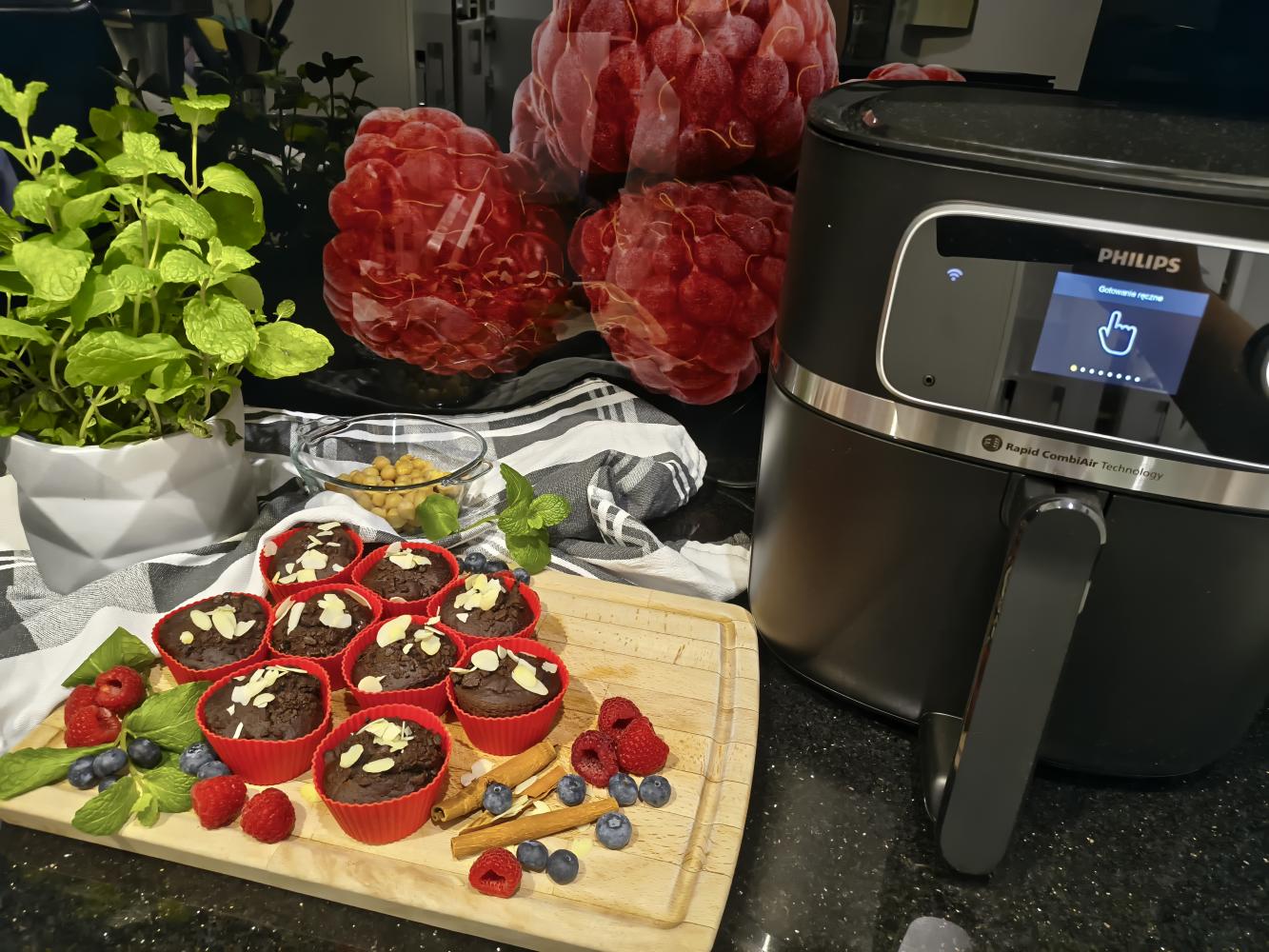 Po upieczeniu wyciągnij muffinki do ostygnięcia. Możesz udekorować wedle uznania, np. płatkami migdałów, borówkami i malinami.