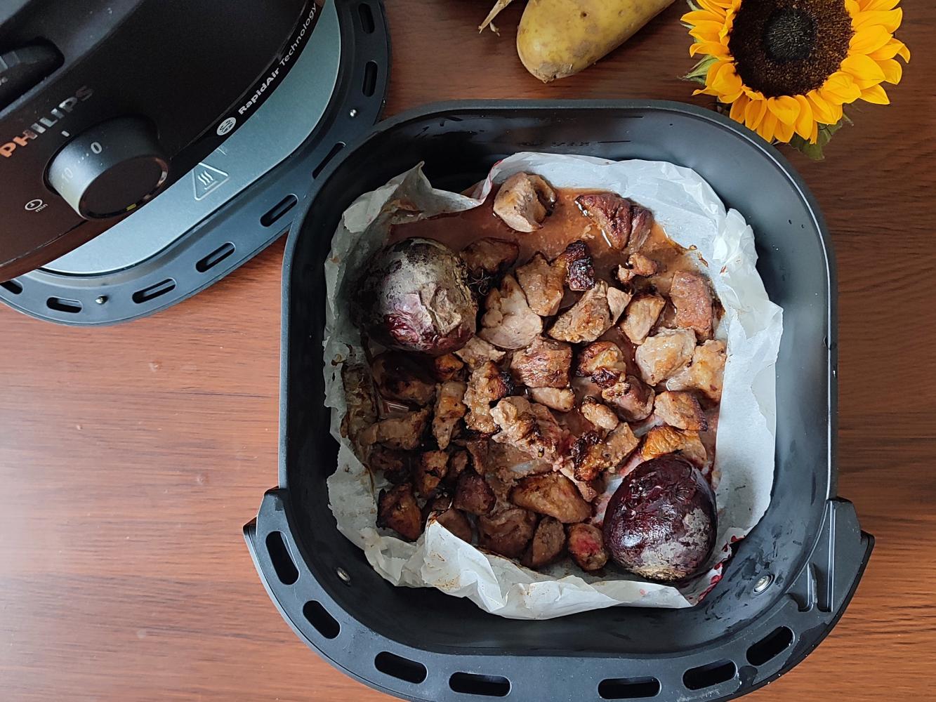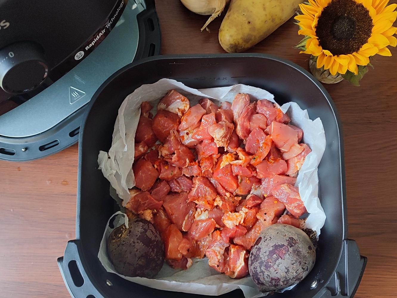 Wstawiamy do misy Airfryera razem z burakami na 10 minut/180 stopni.