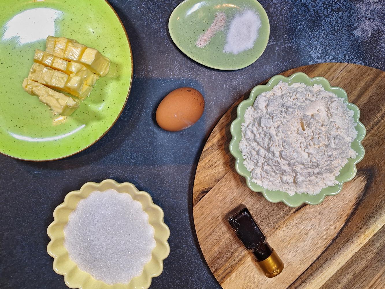 Wszystkie składniki na ciasto szybko zagniatam, a z wyrobionego ciasta robię kulę, którą owijam folią spożywczą i schładzam w lodówce przez 60 minut.