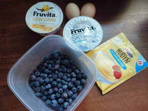 Wymieszać żółtka, jogurty i proszek budyniowy.