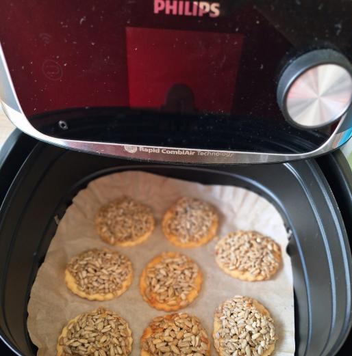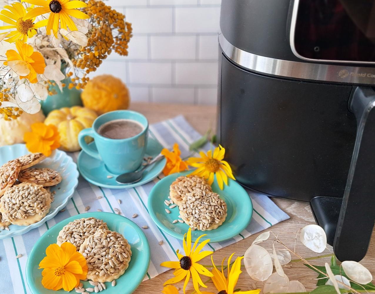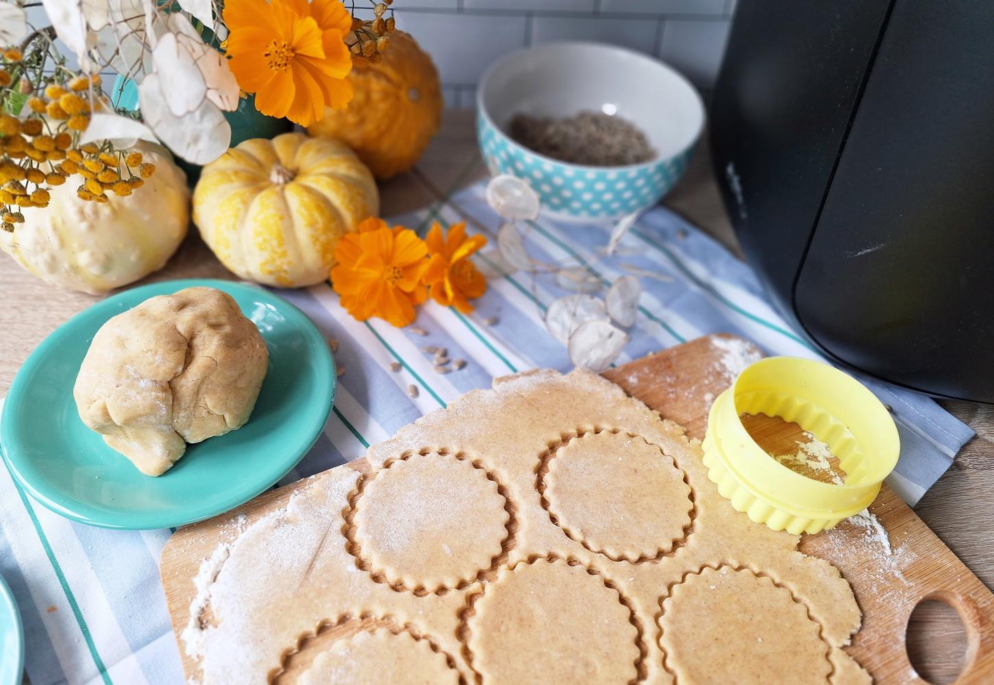 Pieczemy przez 15-20 min w Air Fryer na złoty kolor. Ciastka są lekkie, kruche i przyjemnie maślane. W sam raz na drugie śniadanie lub deser.