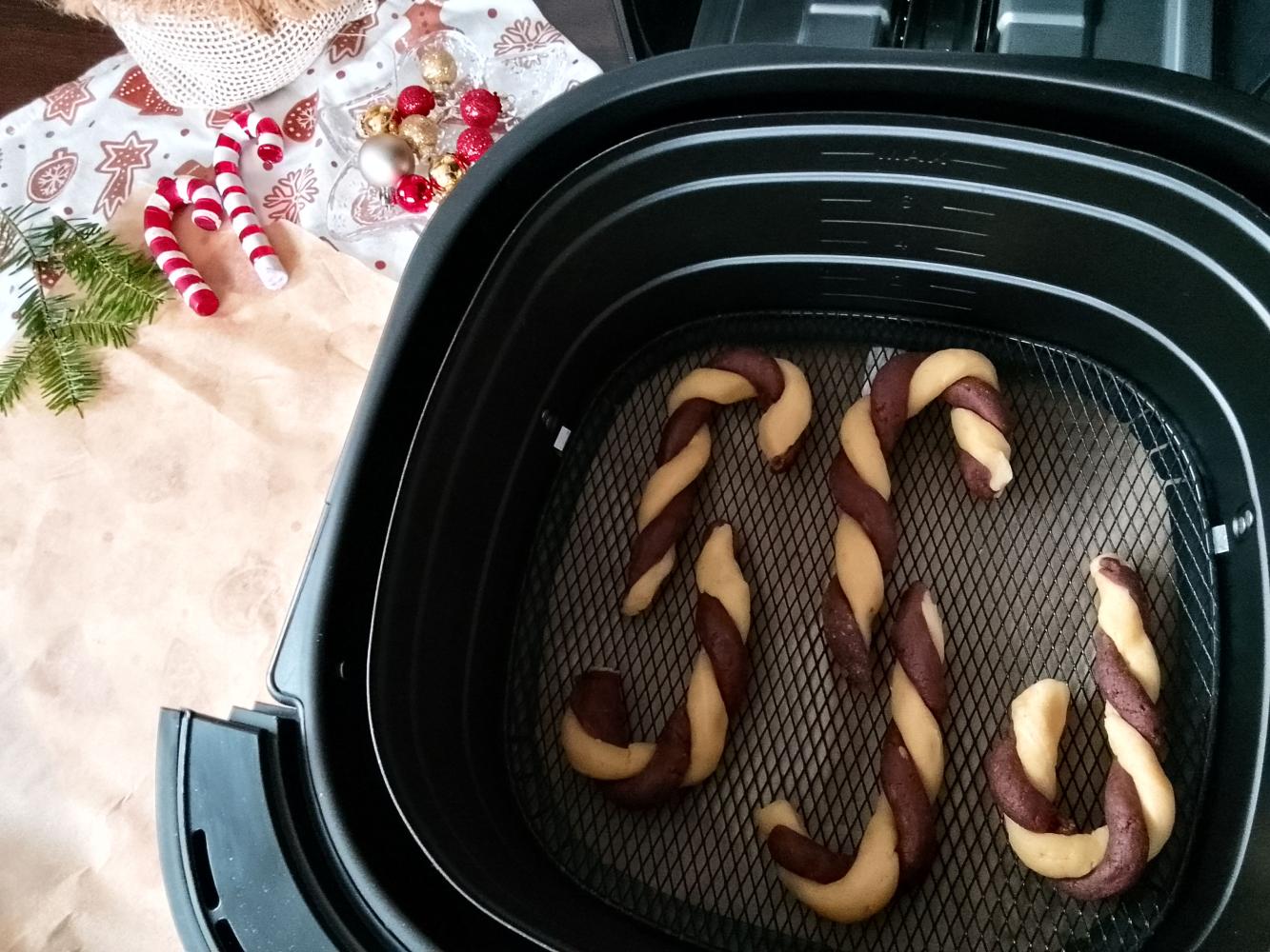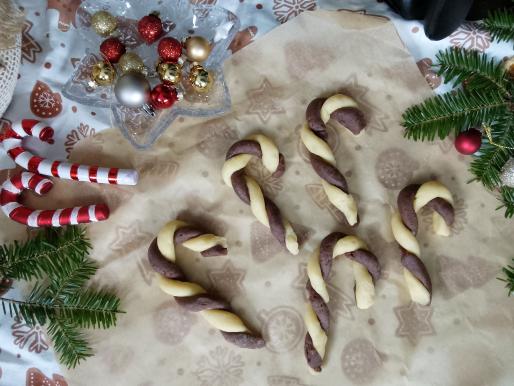 Formujemy na kształt cukrowej laski. Pieczemy przez 15-20 min.