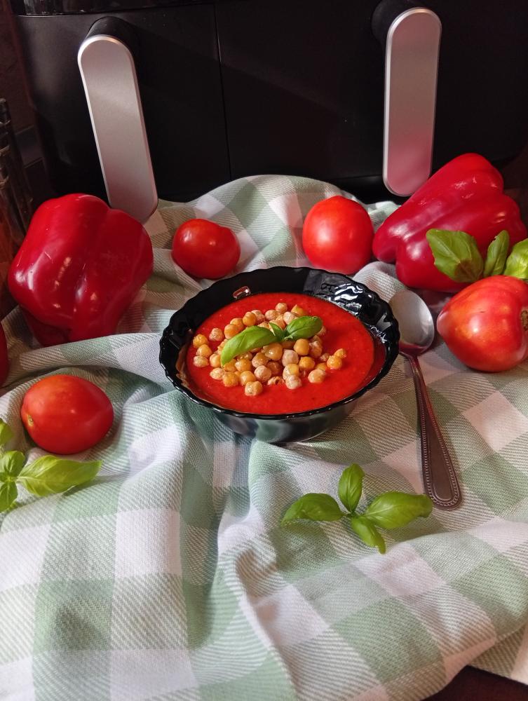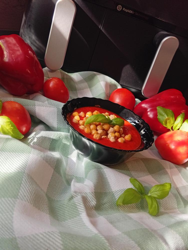 Zupa krem z pieczonych pomidorów i papryki z ciecierzycą