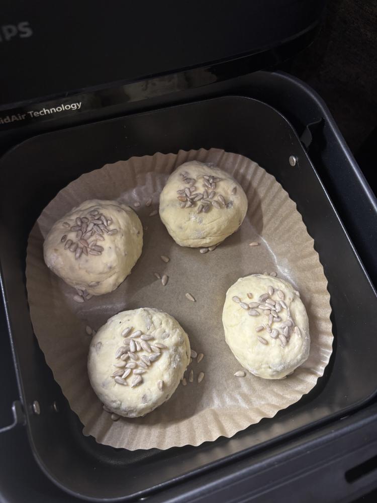 Ułóż je w szufladzie airfryera i posyp je z wierzchu nasionami słonecznika.