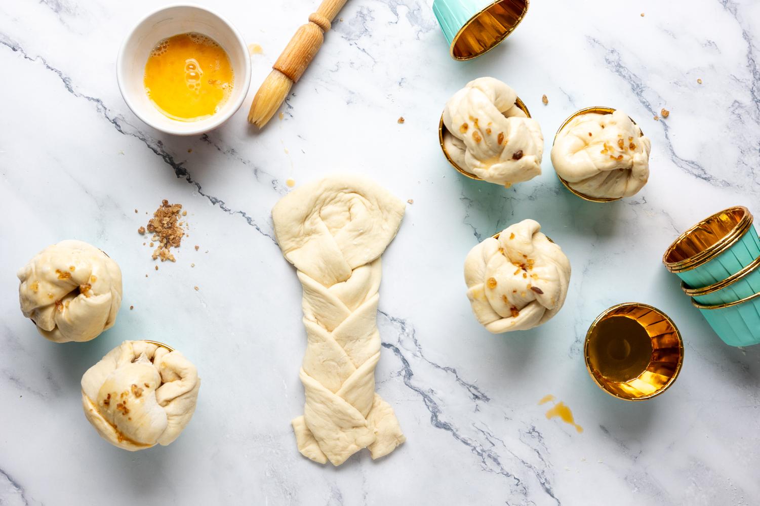 - Posmaruj jajkiem, piecz 18–20 minut w 180°C.