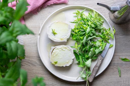Roladę kozią skrop odrobiną oliwy z oliwek i zapiecz w 200°C przez ok. 6 minut, aż się zarumieni i zyska złotą skórkę.