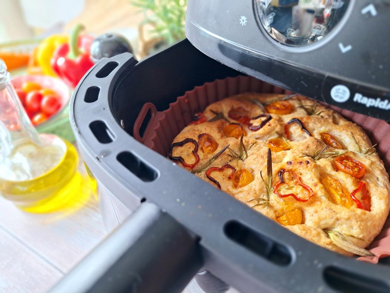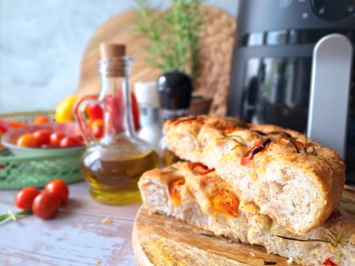 Wstawić do frytkownicy nagrzanej do 200°C piekarnika i piec przez 25 minut na złoty kolor. Można podawać z dodatkową oliwą.