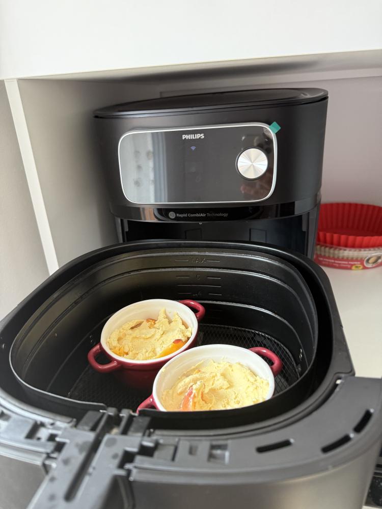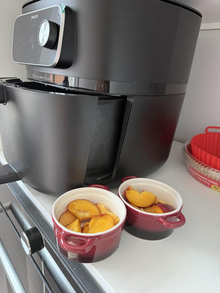 Brzoskwinie kroimy. Z reszty składników zagniatamy ciasto i przykrywamy owoce.